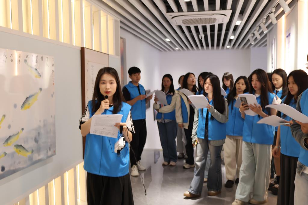 培训伊始,学院团委为参训同学分发精心编制的讲解稿,帮助大家对即将开展的讲解工作形成初步认知框架。随后,员工党员何丽贞作为培训主讲人,从活动整体规划切入,系统梳理讲解流程,着重强调了各个环节的注意事项。在实地讲解示范环节,她以场馆外古朴大气的福船模型为引,带领志愿者们沉浸式游览体验馆,依次介绍了大黄鱼的全息影像、特性与价值,以及国鱼计划和产业发展等关键内容。她围绕“国鱼计划”的战略意义、大黄鱼全产业链的创新突破等内容,展开了全面且专业的阐述,尤其对大黄鱼产业在乡村振兴、海洋经济发展中的重要作用进行了重点剖析,强调该板块讲解需结合详实数据与案例,确保内容的权威性和感染力。培训过程中,志愿者们全神贯注聆听,积极互动提问,现场学习氛围热烈浓厚。