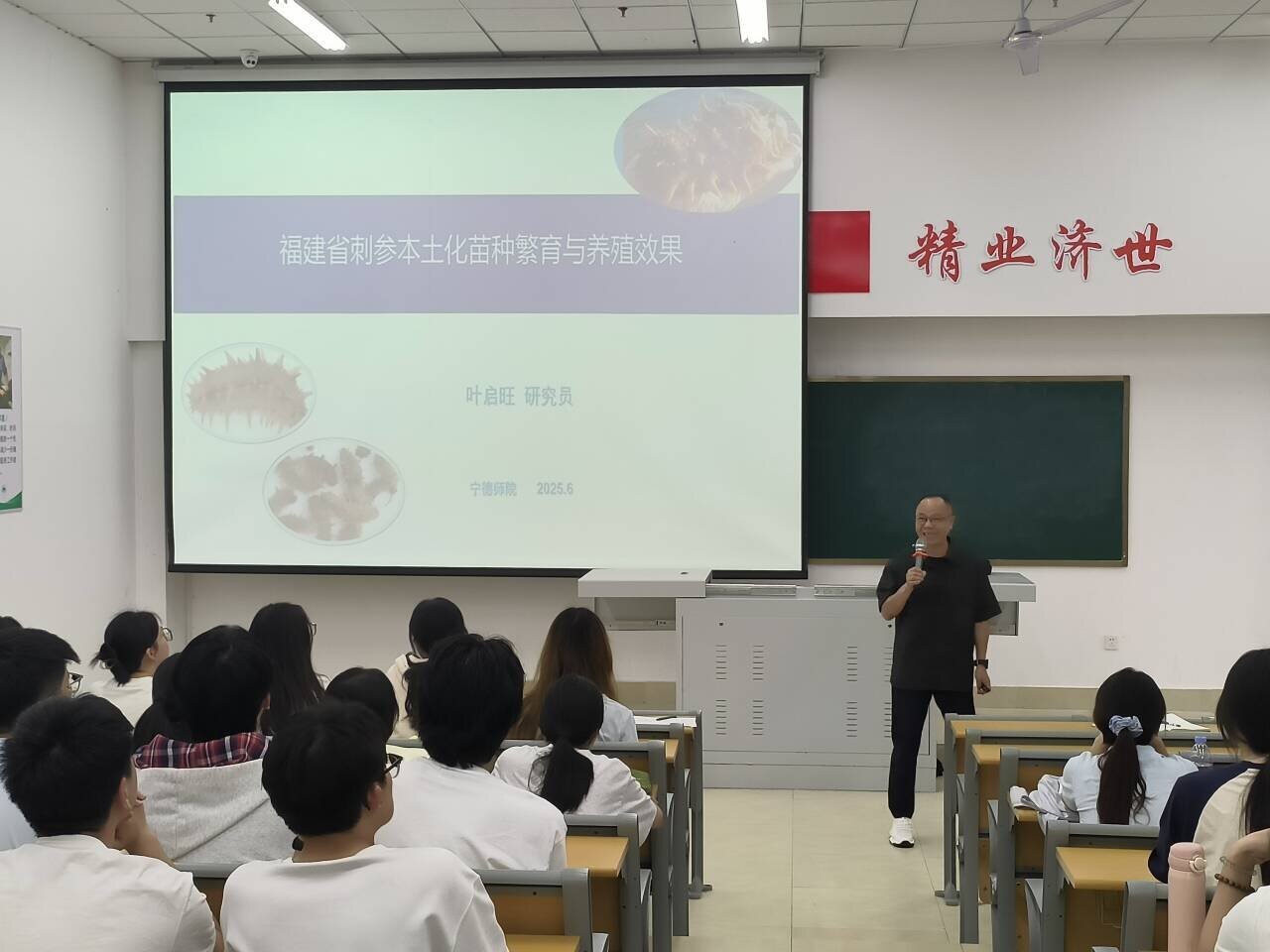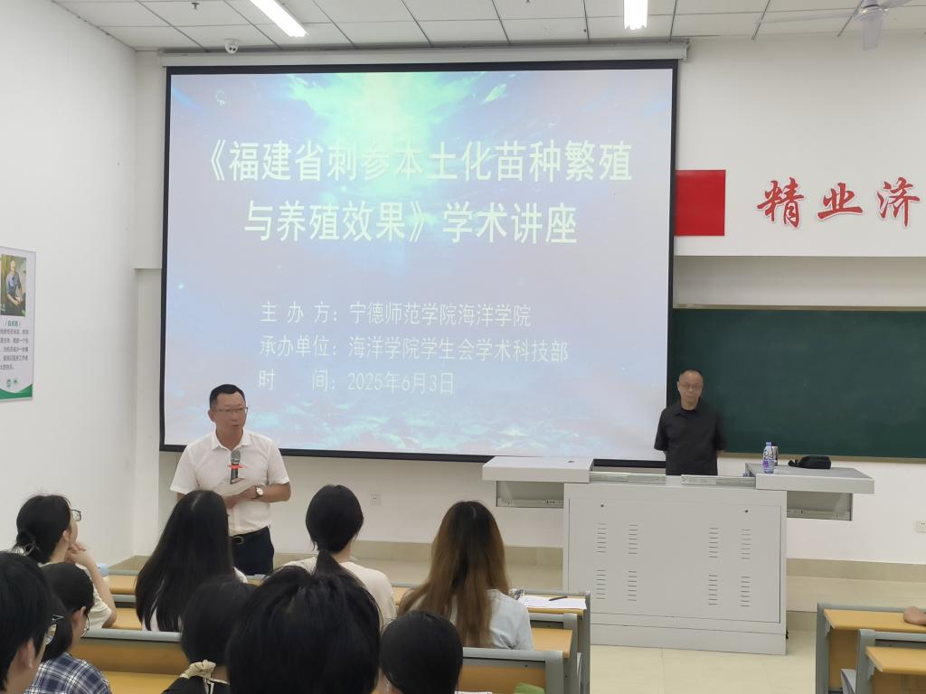 为了推动福建省刺参本土化苗种繁殖与养殖技术的创新发展,助力海洋学科的学术交流与实践探索,202563日,公司在医教楼101成功举办了《福建省刺参本土化苗种繁殖与养殖效果》讲座。此次讲座为师生们提供了一个深入了解刺参养殖前沿技术、交流实践经验的宝贵平台,为福建省刺参养殖产业的高质量发展注入了新的活力。
